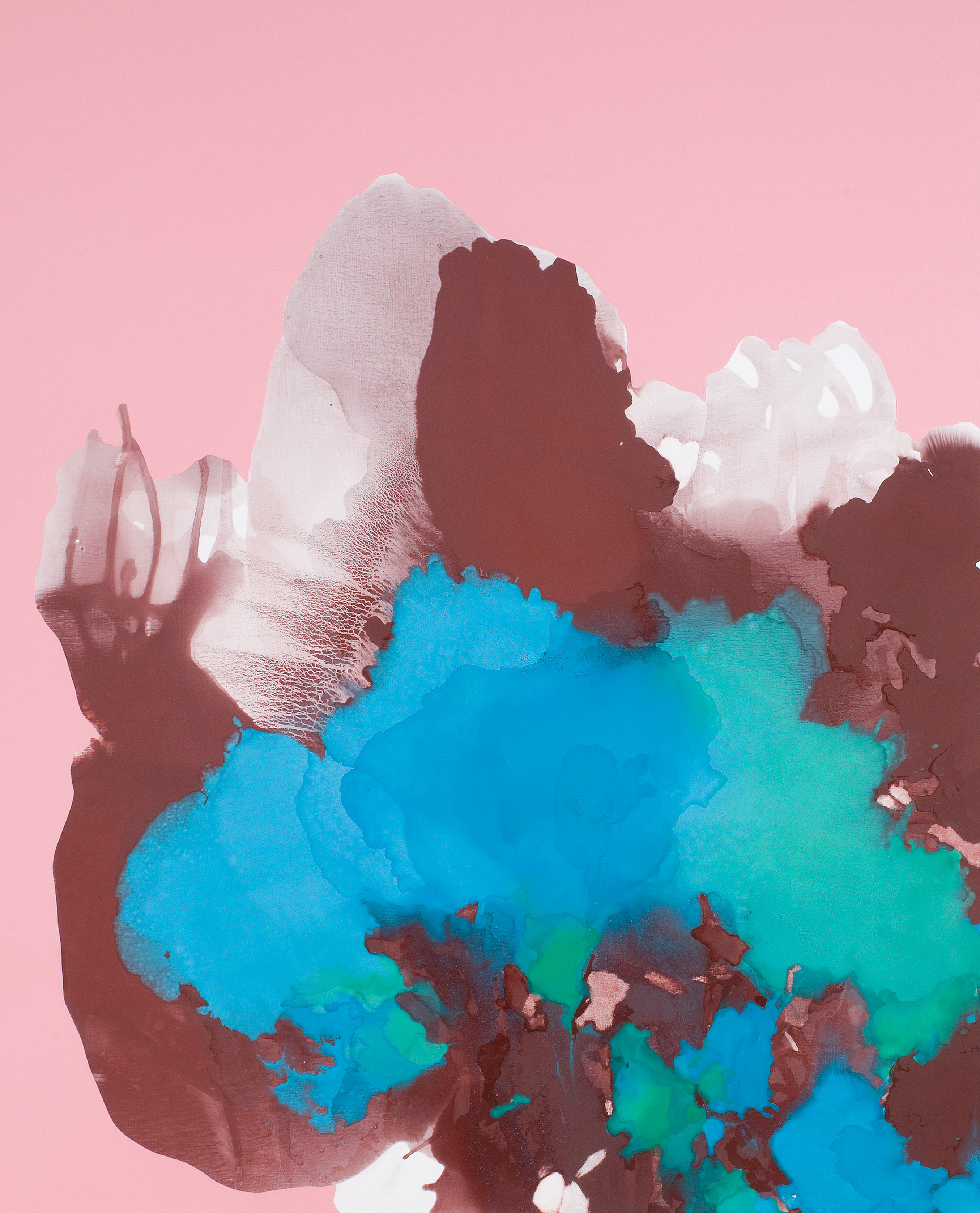작가는 캔버스를 바닥에 눕히고 그 위에 안료를 부은 다음, 붓을 쓰지 않고 경사면의 각을 조율하는 과정을 통해 퍼져나가는 물감의 자취를 만든다. 색깔마다 밀도가 조금씩 다른 물감이 털펜타인 등과 함께 겹겹이 쌓이는데, 작가는 이를 ‘시간차 공격’이라고 부른다. 시간의 차이를 두고 성질과 상태가 다른 것들끼리 서로를 흡수하고 밀치면서 파열음과 조화가 공존하는 기이한 화음을 내게 하는 것이다. 무엇을 그리는 행위가 아니라 어떤 상황을 극적으로 연출하고 물리적인 법칙의 인과관계를 시각화하는 행위이다. 작가는 분석과 해체와 조합이라는 조형적인 원칙을 세우고, 시간의 흐름에 따라 변하는 그 자신의 표현감정 및 지적인 성찰에 작업을 맡기는 방식을 취하고 있다. 그러기에 그녀의 작업은 마치 꽃나무가 자라면서 점차 다양한 모습으로 스스로를 변화시켜 가듯이 변주와 변신을 거듭해 올 수 있었다.