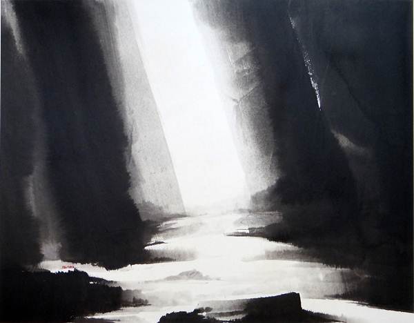 또한 '스며들어 통한다' 라는 담론으로 치유미술을 선보이고 있는 작가는, 작품을 보는 사람이 가장 안정되고 평온한 심적 상태를 가질 수 있도록 하는 조형성을 이룩해 내기 위한 작업을 해왔다. 위에서 내려오는 빛줄기는 단순한 먹의 번짐이 아니라 상처받고 고통받는 우리의 깊은 내면까지 스며드는 치유의 광선인 것이다. 절재된 붓 터치와 단순화를 통한 구성과 비구성의 경계에 선 작품으로 동양적 기품에서 모던함을 이끌어내 보는 이로 하여금 한 자리에 오래 머물도록 한다. "빛이 없으면 볼 수 없다. 볼 수 없다는 것은 때로는 존재하지 않는다는 것이기도 하다. 빛은 신의 영역에서 인간 영역으로 전달되는 힘이다. 이 빛의 힘은 세상을 축복하려는 신의 의지를 반영하는 것이어서 존재할 수 없고 볼 수 없는 불완전에서 존재하고 볼 수 있게 되는 완전이 빛으로 인해 생겨난다. 수묵의 재료는 종이와 먹이다. 마치 빛이 종이의 흰색이라면, 먹은 빛이 없는 공간과도 같다. 그러나 빛이 있어야 어둠이 있듯이, 어둠이 없으면 빛을 이해할 수 없다. 이 작품에서 빛은 종이와 먹 사이에서 그 존재를 드러낸다. 세상, 자연, 주변, 그 속의 인간이 모두 빛을 받고 존재하게 되며, 드러나게 되고 결국 치유되게 된다."