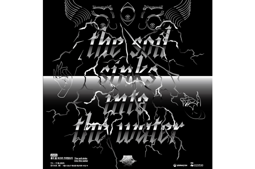 그럼에도 위와 같은 ‘무례한 질문’을 들고 다시 그의 작업으로 돌아와 보자. 이번 전시 《흙이 물속으로 가라앉는다》는 무엇을, 왜 그린 것일까? 또 무슨 의미가 있을까? 오시영의 회화들은 거칠고 가볍게 발려있는 표면에 비해, 나름 무겁고 진지한 종교적, 철학적 사유를 함의하고 있다. 전시 제목인 ‘흙이 물속으로 가라앉는다’는 티베트 불교에서 사람이 죽음에 이르는 과정과 현상을 표현한 세 가지 문장 중 하나이다. 그 세 가지 표현은 다음과 같다. 첫째, 신체의 압박감이 ‘흙이 물속으로 가라앉는다’라고 표현하는 것. 둘째, 몸이 마치 물속에 잠기듯이 신체의 끈적끈적하고 차가운 느낌은 점차 뜨거운 열의 느낌으로 녹아드는데, 이것을 ‘물이 불 속으로 가라앉는다’고 표현한 것. 셋째, 몸이 원자들로 날아가 버리는 듯한 느낌을 ‘불이 공기 속으로 가라앉는다’고 표현하는 것이다. 티베트 불교의 언어를 빌려와, 혹은 그것에 의지해 그가 이야기하고 싶었던 것은 구태의연하게도 ‘죽음’에 대한 어떤 감각이었을 것이다. 그런데 여기서 죽음의 과정을 감각케 하는 공통적인 표현은 ‘가라앉는다’이다. 오시영을 죽음의 경계로 이끈, 그리고 평생의 장애를 안긴 ‘중력’이 전시의 제목으로 떨어진 것만 같다. 화면은 가볍고 테두리는 무겁다.